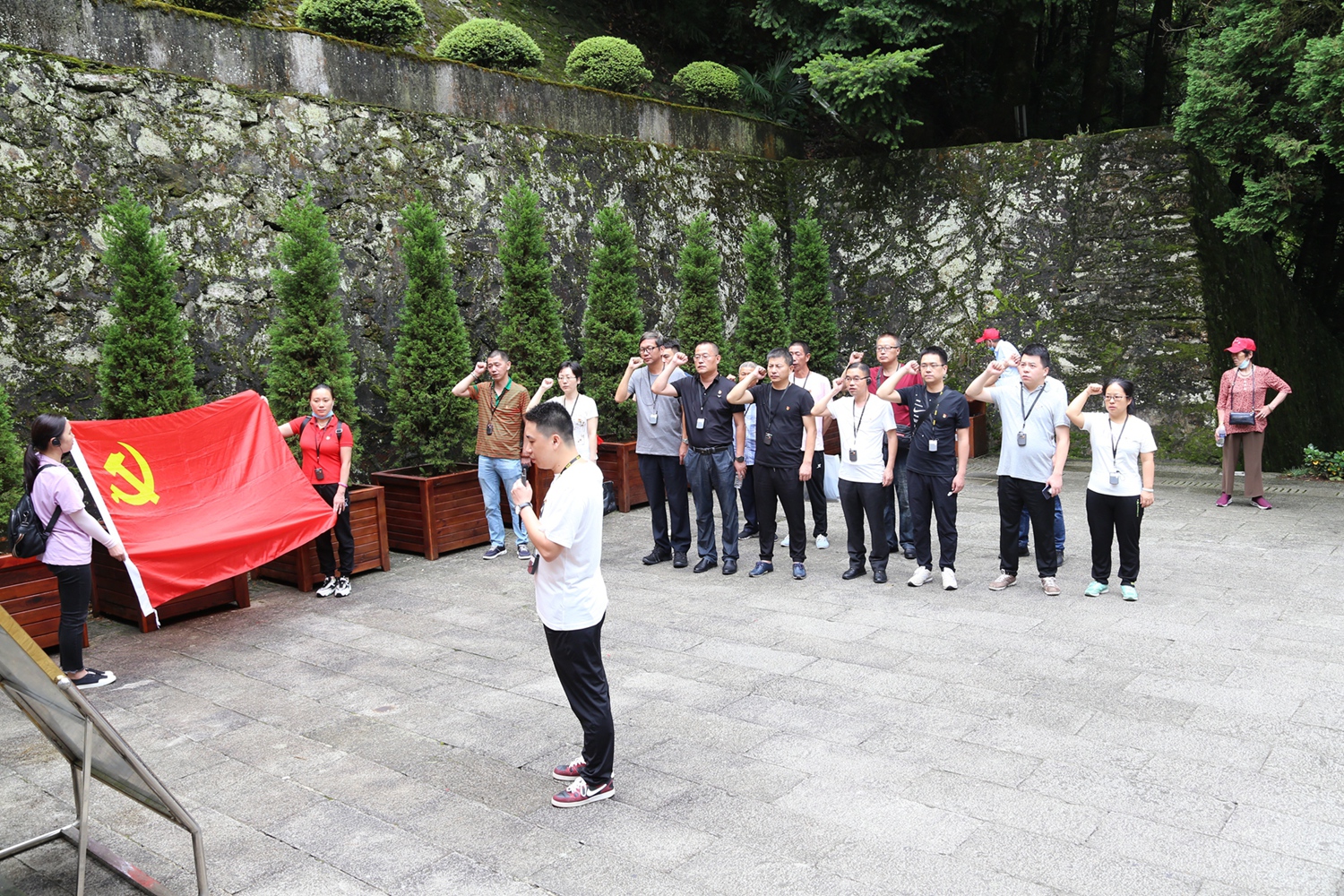 培訓班以理論加現場教學的形式,組織參拜了北山烈士陵園,向4萬多名長眠在這里的革命英烈敬獻了花圈。學員們懷著激動莊嚴的情素,在烈士圣地舉行了入黨宣誓儀式,藍天白云下廻蕩著學員們對黨立下的錚錚誓言。