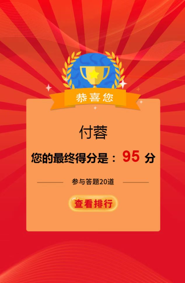 該競賽是以“傳承紅色基因 守牢紀法底線”為主題,通過線上學習,線上答題的形式,以考促學,以考驗效,營造了學習“四史”的濃厚氛圍,重點教育黨員干部深刻認識“兩個確立”的決定性意義,增強“四個意識”、堅定“四個自信”、做到“兩個維護”。同時,把答題活動作為加強黨員干部紀法教育的重要載體進行落實,激發黨員干部學習紀法知識的積極性、主動性,牢固樹立紀法意識,自覺嚴守紀律規矩、不逾紀法底線,廉潔從政從業、規范行權用權。